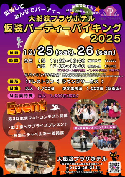 今年もハロウィンに仮装パーティーバイキングを開催します。