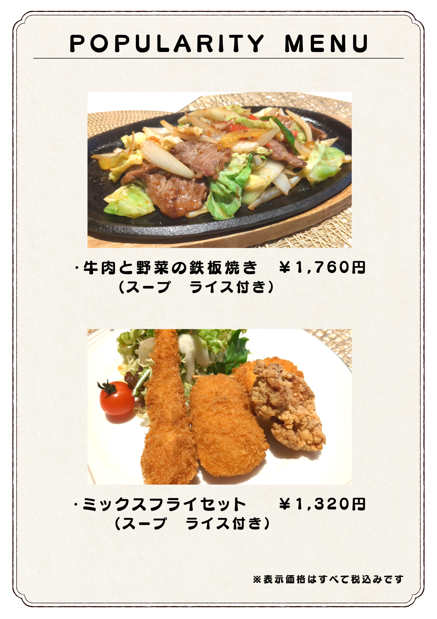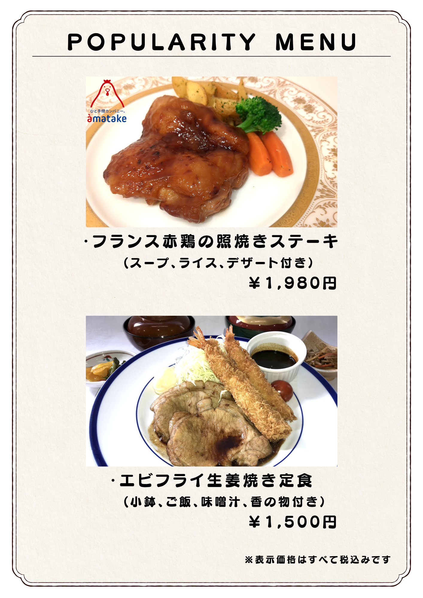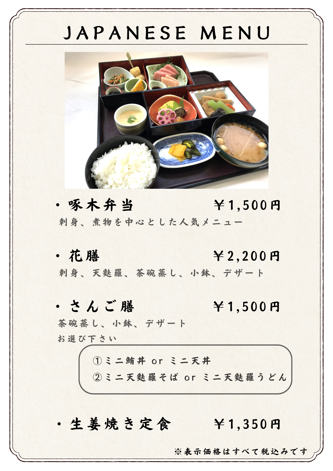 平素より当店をご利用いただき、誠にありがとうございます。 この度、五月一日(金)より価格を改定させていただきます。