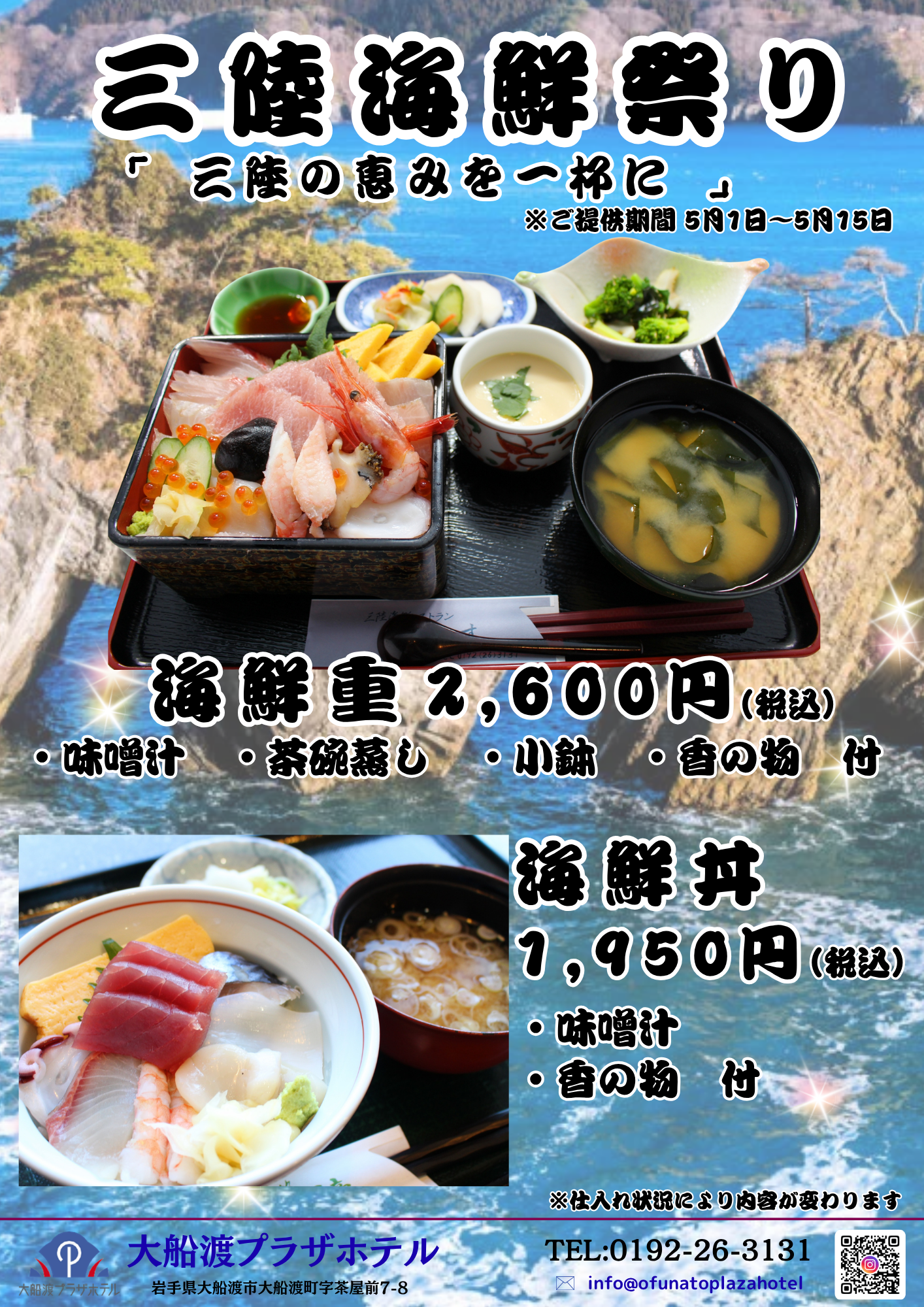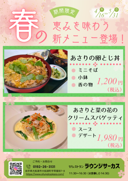 当店では現在、春限定メニューとして、5月1日から5月15日までの期間限定で、三陸の海の恵みを贅沢に味わっていただける特別メニューをご用意いたしました。